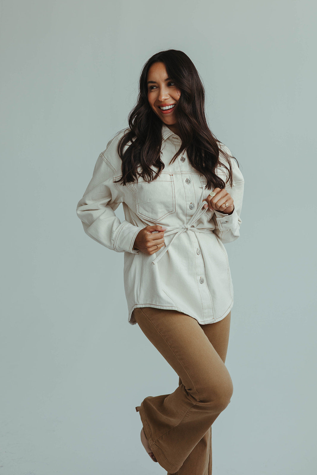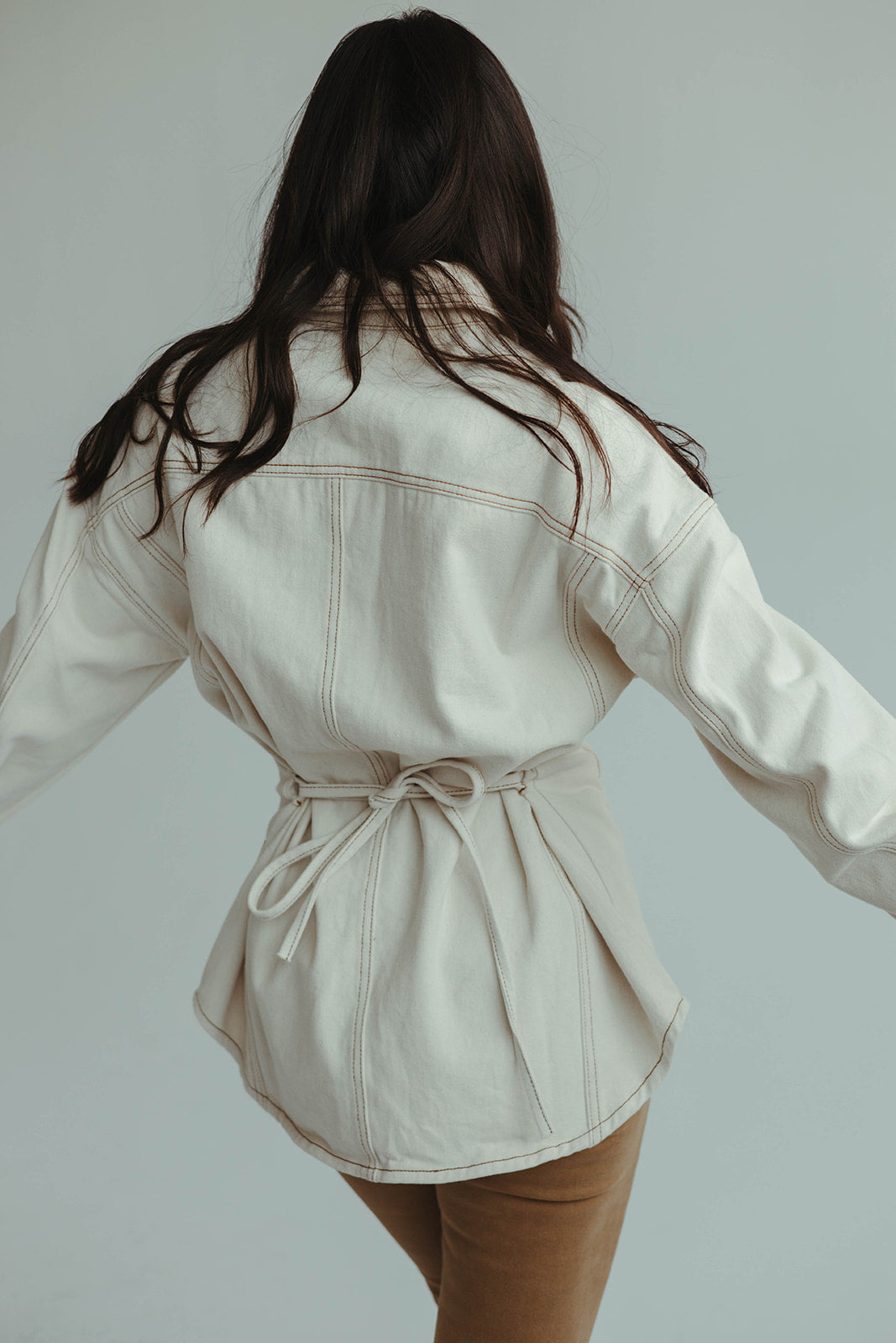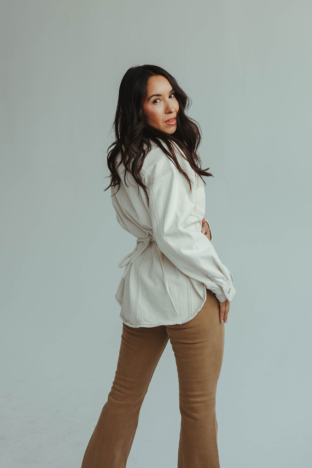 • Designed to wear open as a light jacket, cinched at the waist for shape, or Buttoned with no shape as a top